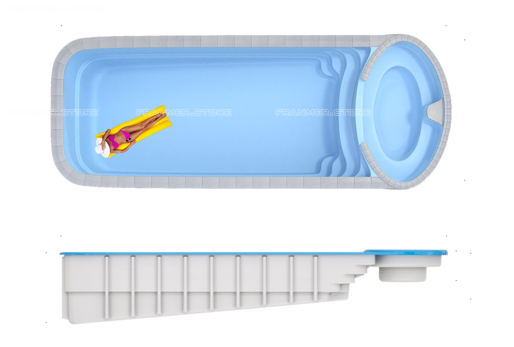 "Коньяк" уникальный бассейн класса Премиум. Изготавливается из спец. сырья эталонного качества. При производстве бассейна применяются такие технологии, как: <Power Lock>™ (каркас из массивных ребер жесткости) и <Carbon Systems>™ (усиление наиболее уязвимых частей бассейна карбоновым волокном).Толщина стенок 1-1,2 см. Толщина декоративного слоя 1-1,2 мм. Заводская гарантия на целостность бассейна 35 лет, на декоративный слой из гелькоута 10 лет. Бассейн предназначен для установки на улице, в помещении, в цокольных этажах, на крышах зданий. Доставка осуществляется на спец.прицепе с длинной рамой.
