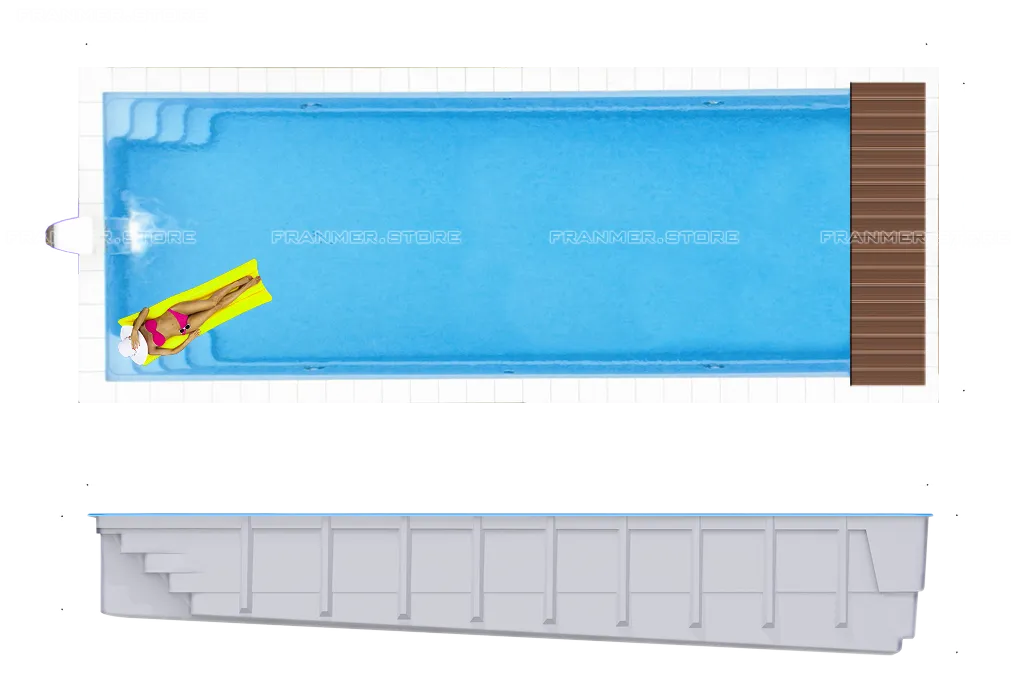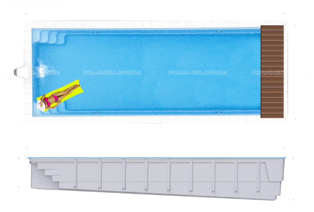 Композитный бассейн "Порто Pool Cover" имеет размер категории XXL. Особенностью этой модели считается дополнительная панель, отделяющая отсек необходимый для установки подводного, жалюзийного укрытия. Глубина бассейна переменная, форма классическая, уникальные расцветки на выбор. Опционально, на чашу наносится ППУ (пенополиуретан) от 3 до 5 см толщиной, применяемый для утепления и дополнительной защиты.