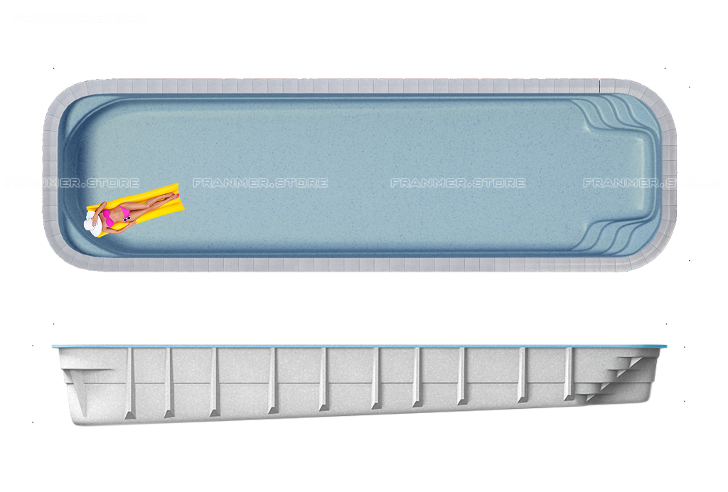 "Олимпик" композитный бассейн класса Премиум. Изготавливается из спец. сырья эталонного качества. При производстве бассейна применяются такие технологии, как: <Power Lock>™ (каркас из массивных ребер жесткости) и <Carbon Systems>™ (усиление наиболее уязвимых частей бассейна карбоновым волокном).Толщина стенок 1-1,2 см. Толщина декоративного слоя 1-1,2 мм. Заводская гарантия на целостность бассейна 35 лет, на декоративный слой из гелькоута 10 лет. Бассейн предназначен для установки на улице, в помещении, в цокольных этажах, на крышах зданий. Доставка осуществляется на спец.прицепе с длинной рамой.