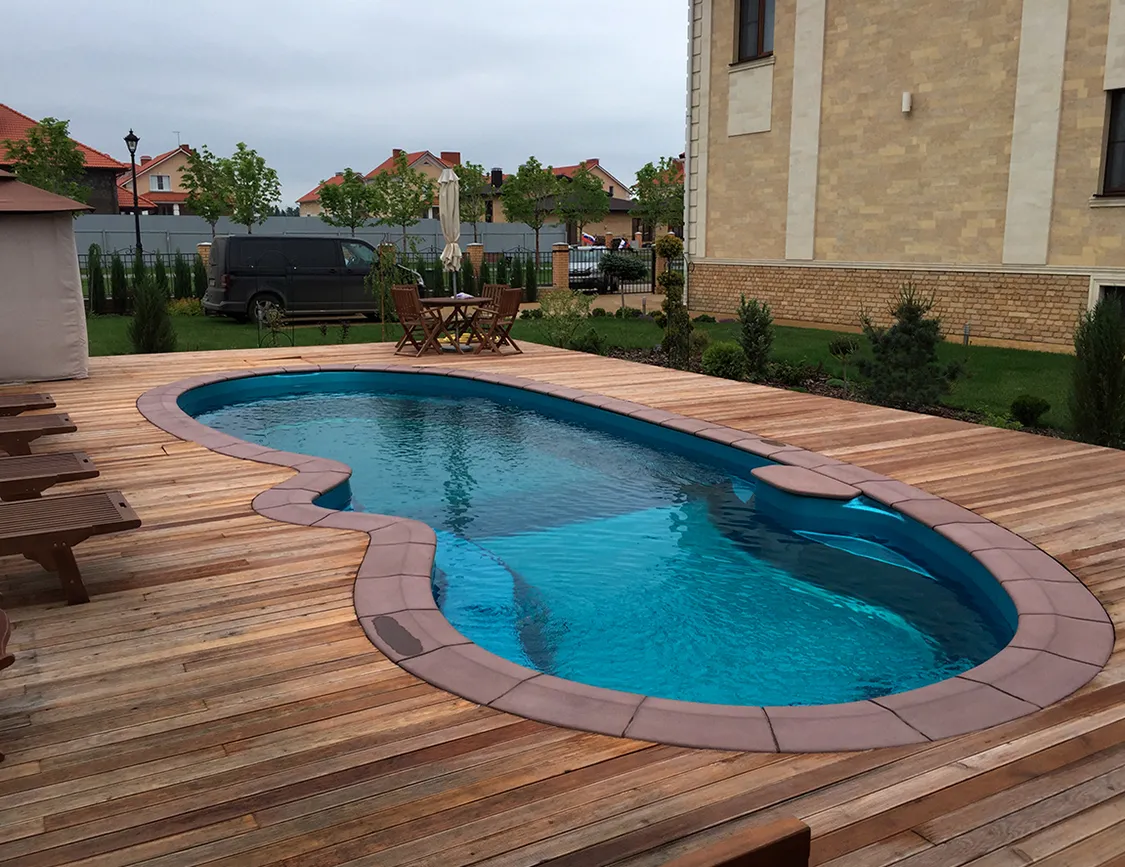 Отгрузка бассейна осуществляется после полной заводской постполимеризации необходимой для набора прочности. Толщина стенок 1,2-1,5 см. Толщина декоративного слоя 1,5 мм. Заводская гарантия на целостность бассейна 35 лет, на декоративный слой из гелькоута 10 лет.
